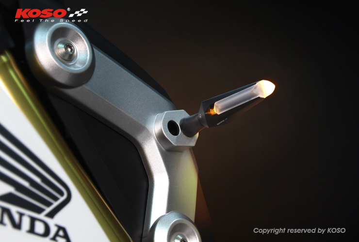Koso Mars LED indicator lights use the new High‑power LED technology. In fact, it is so bright that it uses only 1 light for an ultra‑bright luminosity. Sold in pair and available in matte black or silver, they are perfect to change the look of motorcycle without any hassle. A simple change for a better look !