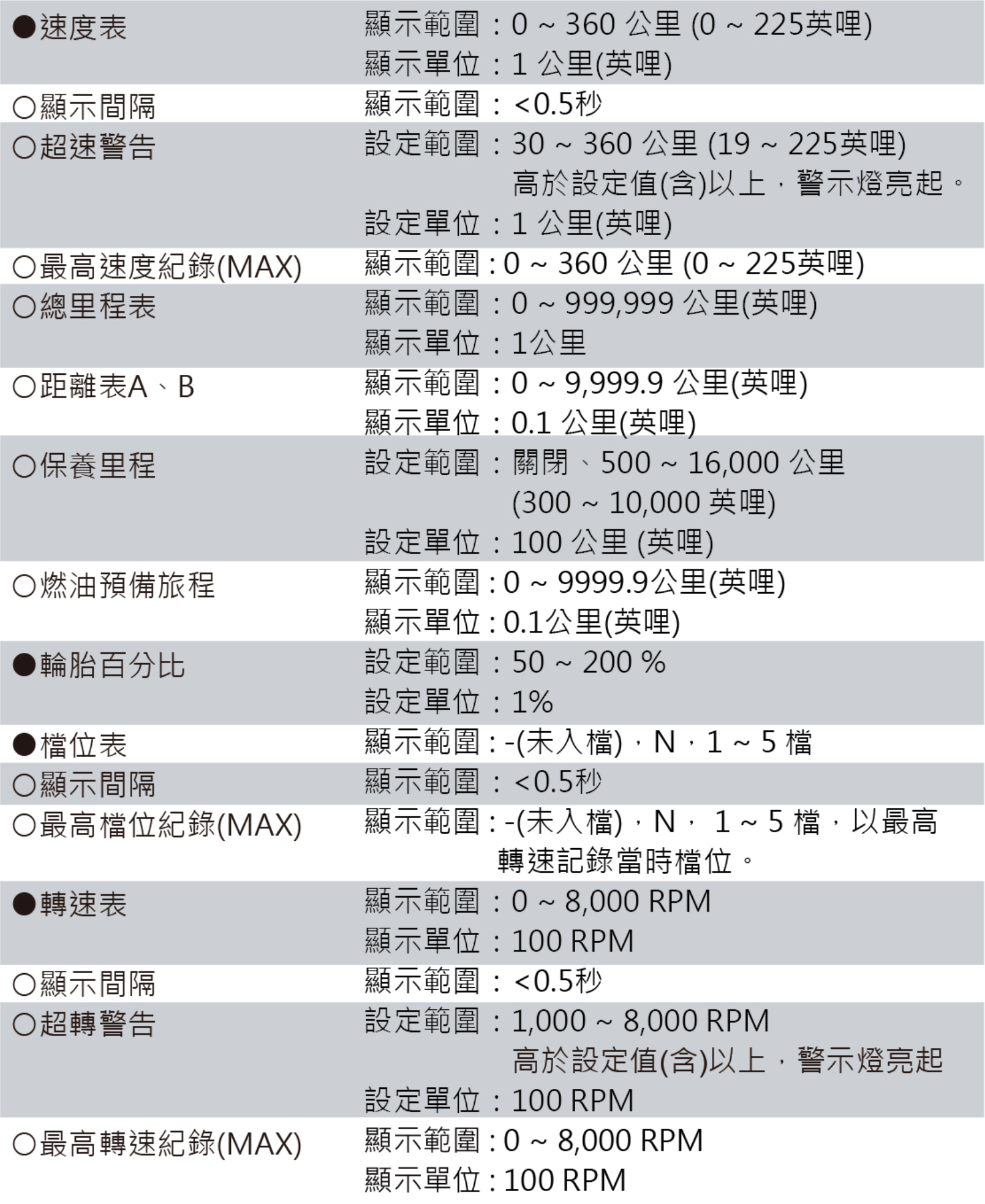 功能、設定說明
